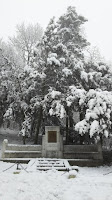 最初はあまり寒くなったのですが、14日には雪が降り出しました。町はそうでもなかったのですが、さすが標高400メートルのカーレンベルクは一面の雪景色でした。展望台からの眺め…なんて見えないよ!